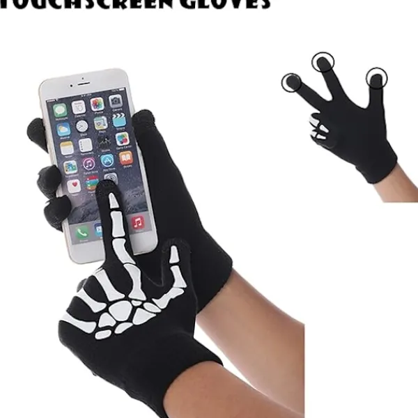 - LYSER I MÖRKRET & PEKSCREEN & VARMA – Tillverkade med speciell tryck som lyser i mörkret, även med 3 pekskärmfingrar, kommer skelettvantarna att ge dina händer mjukt och varmt skydd medan du sms:ar/skriver/skriver under kall vinter. Du kan också bära dem för utomhusaktiviteter. Dessa skelettvantar har god luftgenomsläpplighet och tål en lätt kollision