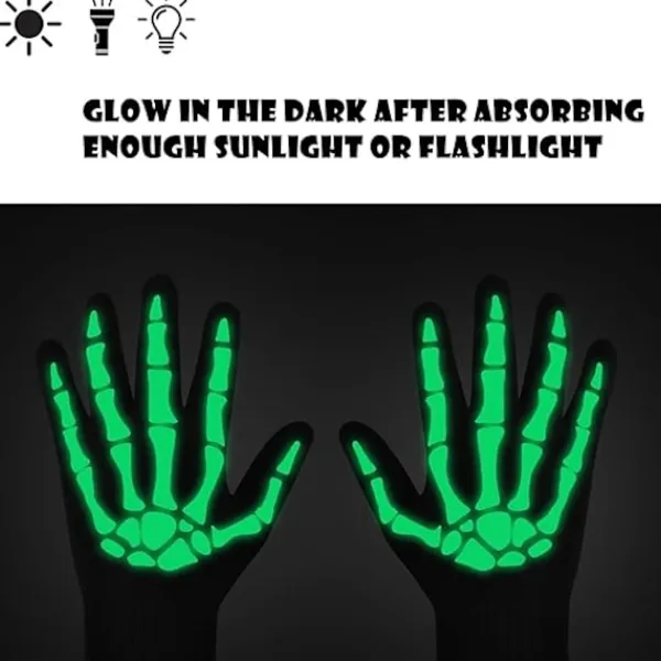 - KUL & PERFEKTA GÅVOR – Skelettvantarna är perfekta för kostymfester och kommer att få dig att sticka ut i mängden. Skelettvantarna lyser i mörkret när lamporna är släckta. De är också en perfekt present till dina familjer och vänner, vilket ger mer kul under julperioden.