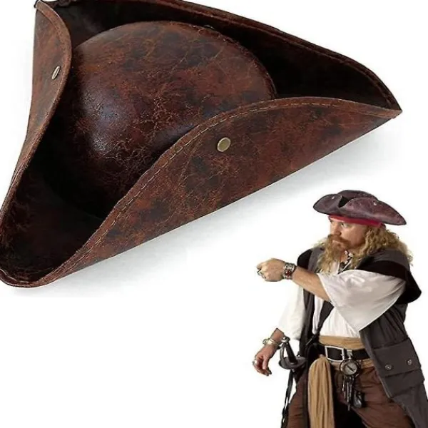 Pirathattarna är designade i trehörningsform, med vintage slitet läderutseende i snyggt brunt, full av piratvibe men också klassiskt, perfekt val av pirattillbehör
