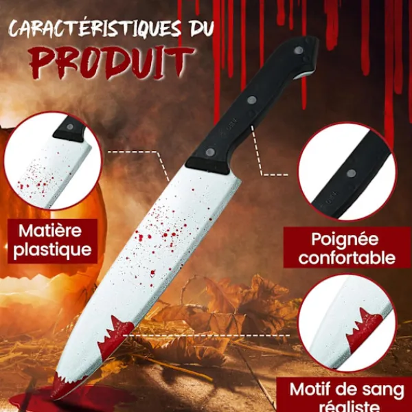 Halloweentillbehör; Denna falska blodiga Halloween-plastkniv är ett fantastiskt Halloweentillbehör för män eller en Halloween-kniv för barn. Halloween-slaktarkniven kan användas som ett falskt vapen för zombietillbehör.
