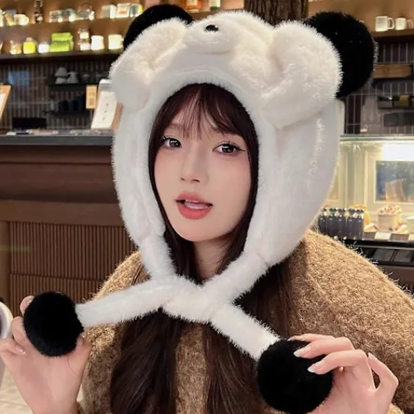 Använd utvald plysch, denna öronlappsmössa är inte bara mjuk och bekväm utan har också härliga björndesign som ger en fashionabel touch till din kallvädersgarderob.