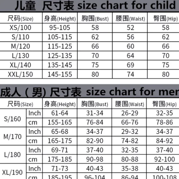 | Size | 110, 120, 130, 140, 150, 160, 170, 180 |
