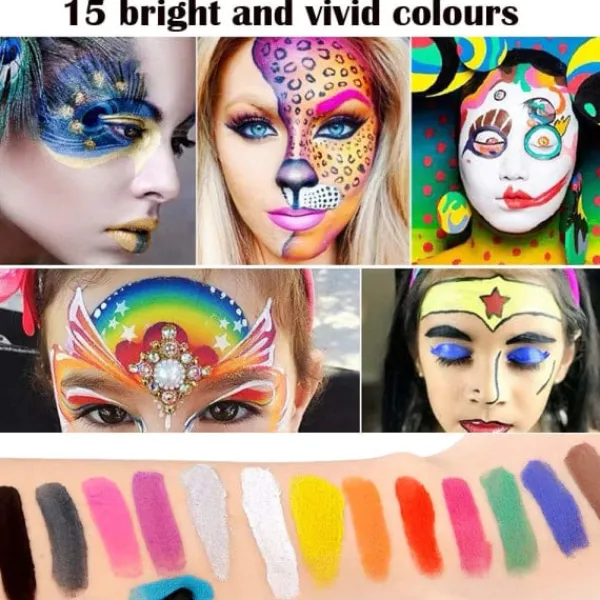 2. 【Säker och giftfri】– Ansiktsfärgerna är säkra, professionella och av högsta kosmetiska kvalitet. De är hypoallergena, giftfria och naturliga. Alla ingredienser i våra ansiktsfärger är laboratorietestade. Men som med all kosmetika rekommenderar vi att du utför ett litet hudplåstertest innan applicering.