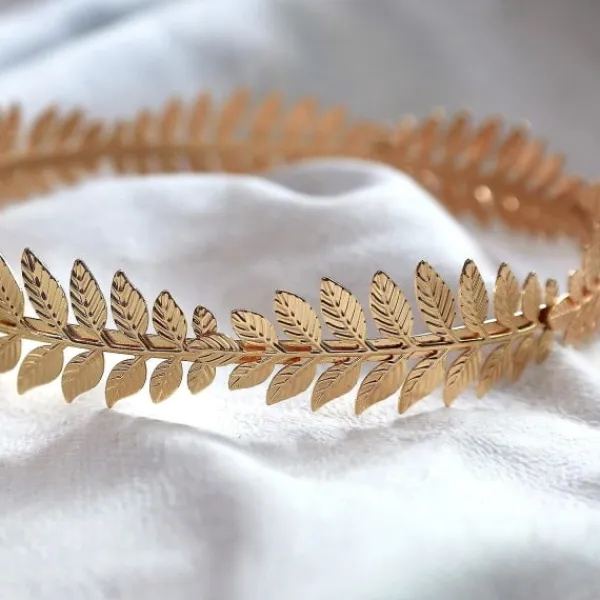 Guldmetallblad är fästa på bandet. Huvudbonaden är bekväm att bära; den är inte heller lätt att flytta.