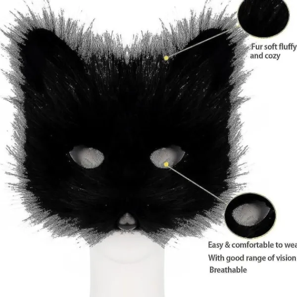 Adolala Lätt att bära, bekväm och andningsbar, unik design, gör dig mer charmig. Vår svansmask och tasshandskar är söta, behåller ett underbart utseende, lämpliga för jul, Halloween, karneval, maskerad, modevisningar, cosplay katt Tack!! Färg Svart