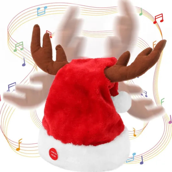 Sjungande och dansande elektrisk julhatt med renhorn för vuxna och barn, festlig julklapp