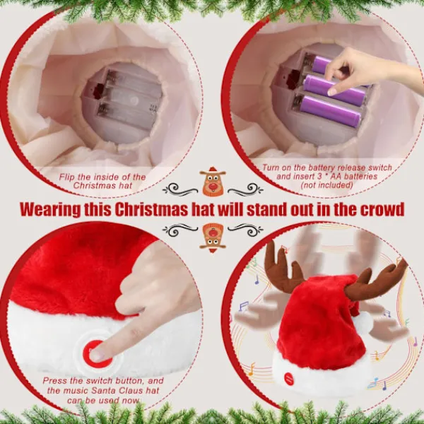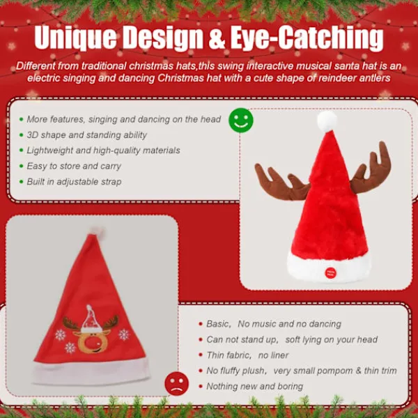 【Mångsidig användning】Perfekt för jul, Halloween, helgdagar och rollspelsevenemang, denna roliga sjungande och dansande hatt fungerar som en härlig present eller dekoration för vuxna, barn, familj och vänner.