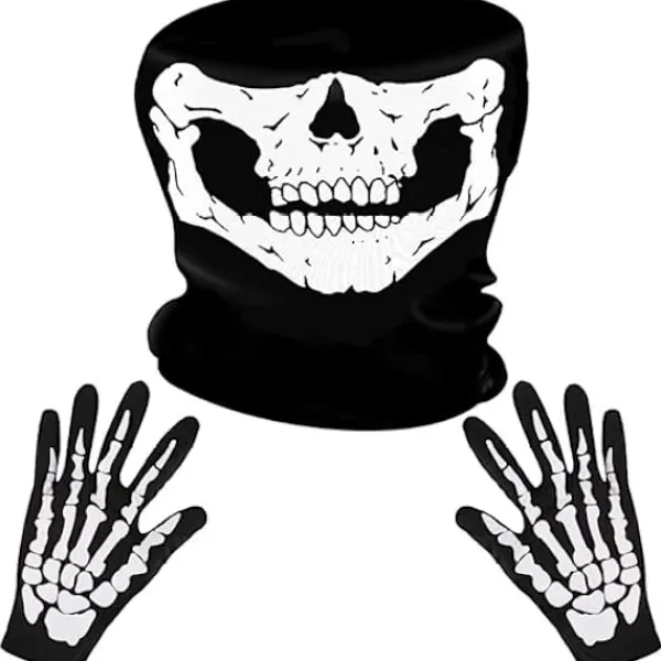 Olika användningsområden: Dödskalle ansiktsmask kan användas som halsdukar, hattar, masker, pannband och andra användningsområden. Handskarna kan användas för halloweenfestkostymer och fotoaccessoarer