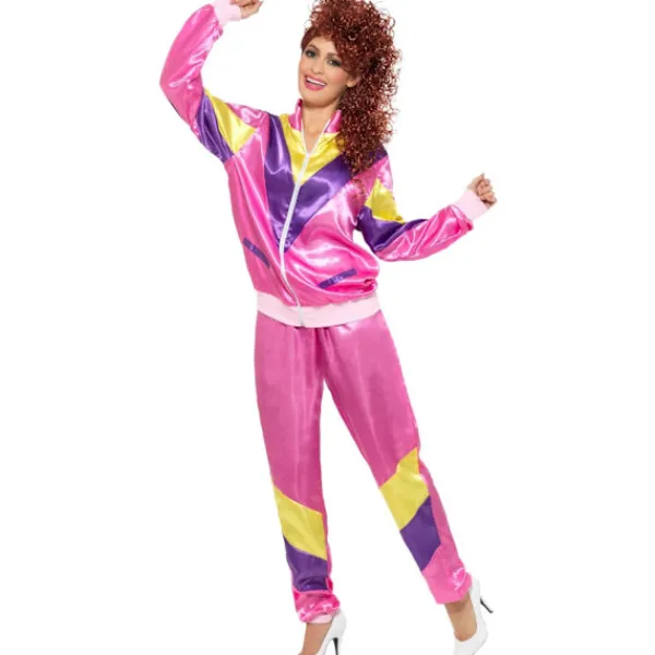 UTSM2226 – Smiffys Dam/Dam 80-tals Mode Kostym 8 UK – 10 UK Rosa/Gul/Lila.