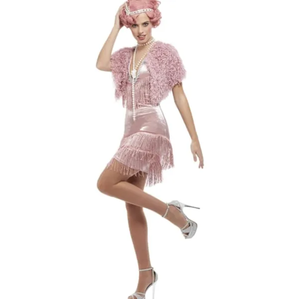 UTSM1426 – Smiffys Dam/Kvinnor Deluxe 20-tals Vintage Charleston-dräkt Set L Rosa.
