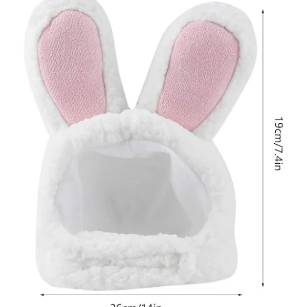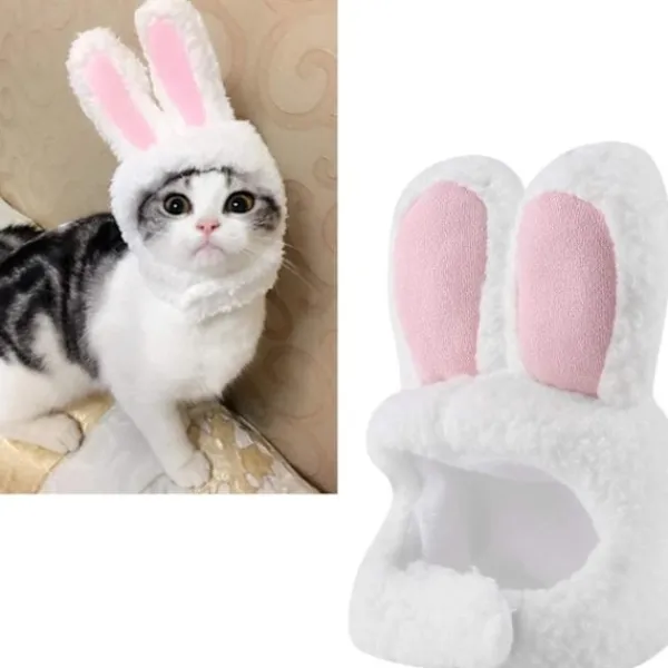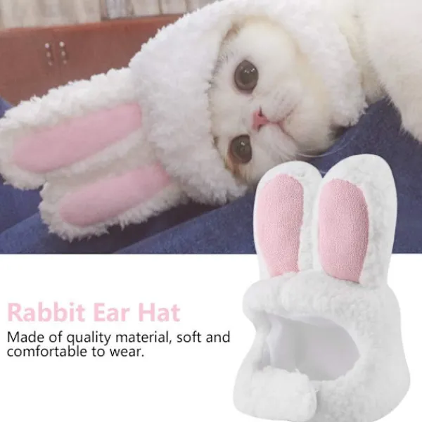 KANINÖRONSDESIGN — Kostymkatthatten kommer att göra din katt attraktiv och trendig. Den är designad med söt kaninform och med vit färg och rosa öra, den kan vara en fantastisk dekoration för ditt husdjur.