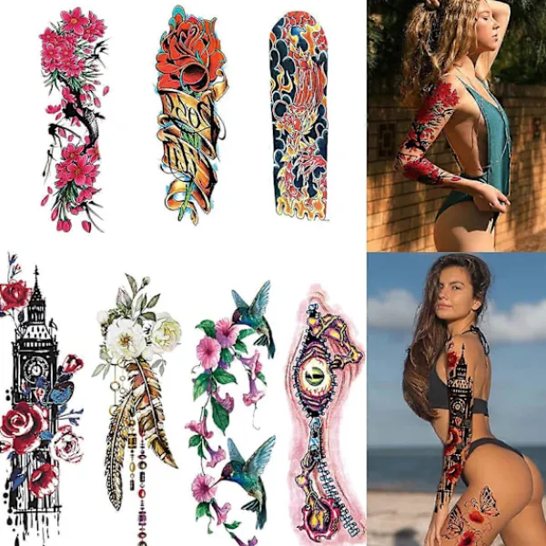 Ärm Tillfälliga Tatueringar – Realistiska, Vattentäta, Hållbara. Stora tillfälliga tatueringar med drak-, fisk- och tigermönster är mycket trendiga och individuella, du kan välja olika mönster för att möta olika intressen och behov. Stora Blommiga Tatueringsdekaler — Ett Paket Innehåller 7 Ark, 8 Ark Full Arm Tatueringsdekaler och 12 Ark Halv Arm Ärm Tatueringar. Noggrant utvalda stilar som alla kan kallas klassiker, så att du kan prova en mängd olika stilar för att hjälpa dig att lysa som en stjärna på fester eller speciella evenemang. Avtagbara Full Arm Ärm Tatueringar – Håller i 3-5 dagar, dessa falska tatueringar är vattentäta så att du kan simma, duscha eller svettas utan att oroa dig. Lätt att applicera på 10-20 sekunder med bara vatten och lätt att ta bort. Mångfaldig Design: Blomma, Fisk Orm, Gäss och så vidare, du kan se bilderna, Bred Användning – Perfekt kroppskonst tillfälliga tatueringar för kvinnor, flickor, tonåringar. Perfekt för Halloween cosplay, fotografering, klubbkvällar, födelsedagsfest, konst & hantverk dekoration, karnevaler, välgörenhetsevenemang, resor, bröllop, dansboll, svensexor och mer.
