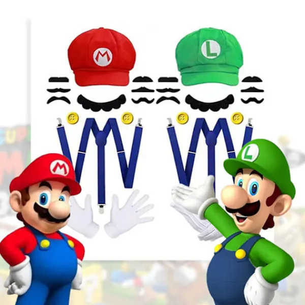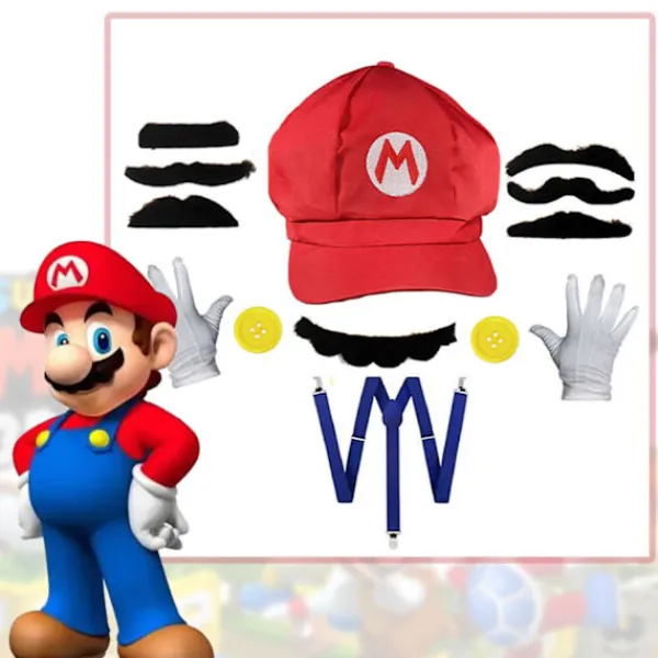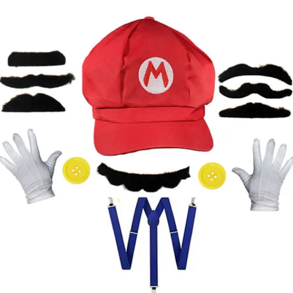 Roliga och autentiska spel Cosplay rekvisita: Klä ut dig som din favorit Mario Bros-karaktär med dessa högkvalitativa cosplay rekvisita inklusive söta hattar, handskar, mustascher och hängslen. Perfekt för Halloween-fester, spelteman eller cosplay-konvent.