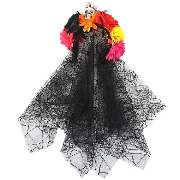 Halloween Blomster Skalle Tiara huvudband, Elegant och utsökt Ros, gotisk spindelnät spets, skalle för huvud Topped Dekor, nyhet utseende älskad av de flesta kvinnor och flickor.