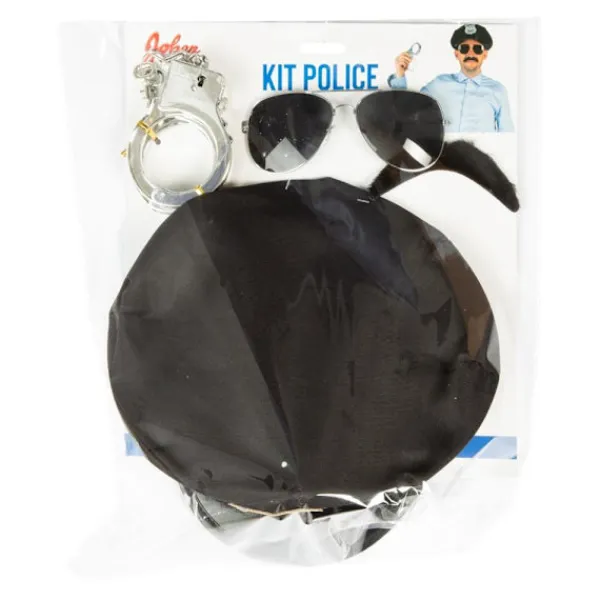 Polis set för alla som vill klä ut sig till polis på festen, halloween, svensexan. Kittet innehåller poliskeps, handbojor, pilotglasögon och mustasch.
