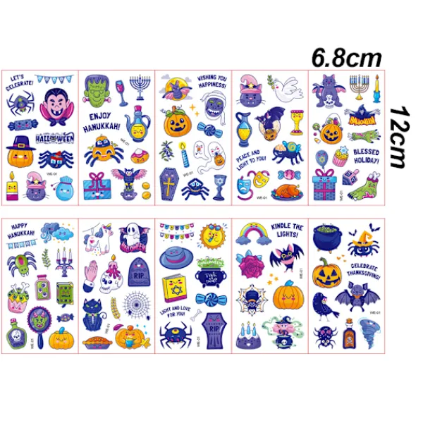 10 stycken Halloween Temporary Tattoos Stickers