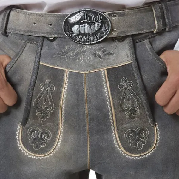 Knapparna och hängslena understryker den traditionella folkdräktsstilen och bidrar till autenticiteten. Tack vare det medföljande läderbältet med metallspänne sitter lederhosen perfekt och de justerbara hängslena är visuellt koordinerade och kan anpassas efter din kropp.