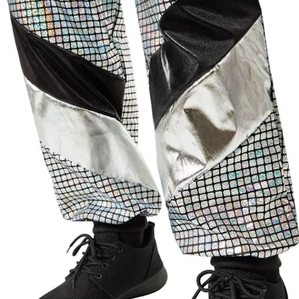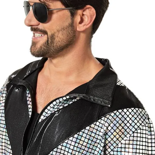 - Glamorös disco-look: Glänsande jacka och byxor i retrostil.