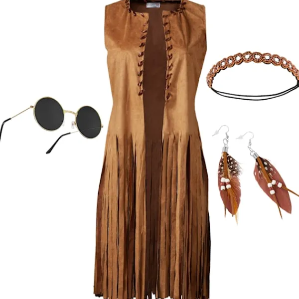 Dyka in i flower power-tiden med damkostymen hippieväst! Detta set är det perfekta valet för alla som älskar den avslappnade stilen från 60- och 70-talet. Den bruna västen kompletteras med matchande accessoarer som solglasögon, ett hårband och stiliga örhängen som fulländar din look.