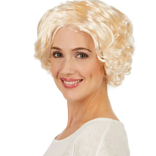 Med denna stilrena peruk förvandlas du till en äkta filmstjärna. Peruken i spännande blond färg förvandlar dig på nolltid till en helt annan typ av kvinna. Äkta glamour uppstår och din outfit får en perfekt avrundning. Peruken kan även kombineras med andra dräkter, som till exempel disco- eller fe-dräkter. Nu finns inga hinder för din stora entré på nästa coola party. Se fram emot fler peruker och passande dräkter här i vår webbshop. Den som vill vara optimalt förberedd för maskerad och halloween, är helt rätt hos oss!