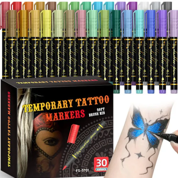 30 olika temporära tatueringspennor i livfulla, rika färger för att göra ditt konstverk ännu mer bländande!