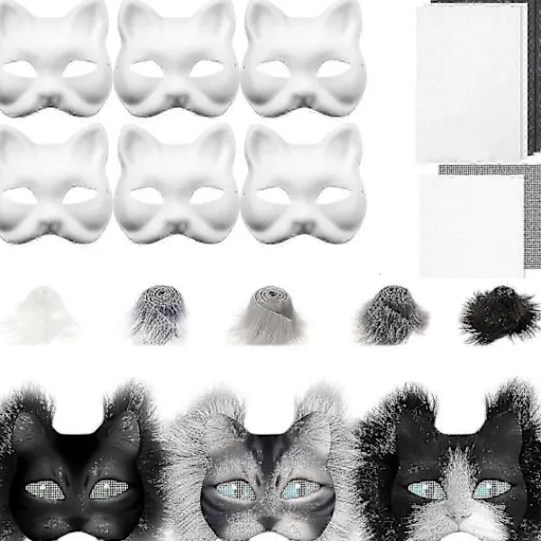 Funktioner: DIY räv- och kattmask att måla, den tomma vita kattmasken låter dig släppa loss din fantasi och kreativitet genom att använda kritor, pennor, akrylfärger, akvarellpennor och olika lim och pigment. Skapa vilken look du vill med kattmaskerna och visa upp din unika personlighet!