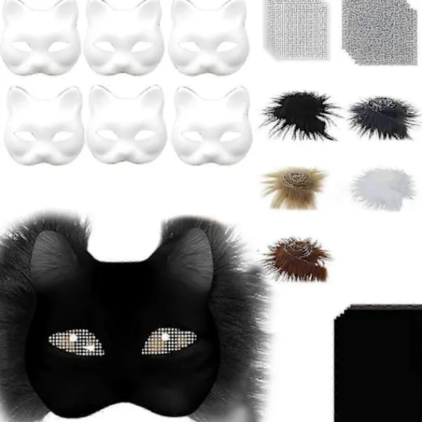 Funktioner: DIY räv- och kattmask att måla, den tomma vita kattmasken låter dig släppa loss din fantasi och kreativitet genom att använda kritor, pennor, akrylfärger, akvarellpennor och olika lim och pigment. Skapa vilken look du vill med kattmaskerna och visa upp din unika personlighet!