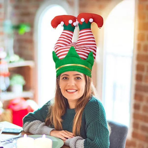Presenterar tomtebyxorhatten, ett roligt och festligt tillbehör som kommer att glädja dina julfiranden. Perfekt för virtuella sammankomster, arbetsmöten eller familjesammankomster, den här Santa-benhatten kommer garanterat att starta konversationen och skrattet. Det är en idealisk skämtsam present och ett bra tillägg till din juldräkt eller granklänning. Häng den högt på huvudet eller använd den som en hyll- eller bordsdekoration för en humoristisk touch. Det mjuka och andningsbara nätfodret säkerställer komfort under hela festligheterna. Passar de flesta vuxna och tonåringar, den här Santa-benhatten är ett måste för den årliga fula juldräktstävlingen eller som ett roligt fototillbehör för hela familjen.
