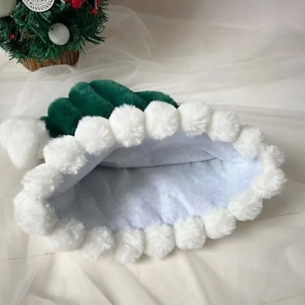 Denna tomteluva är gjord av tjock plysch och lurvig kant