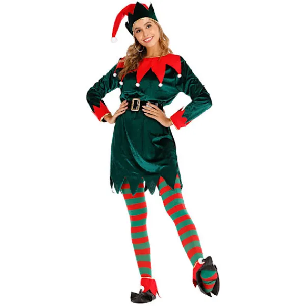 Innehåller tomtenisse kostym, röd grön, med hatt och tunika