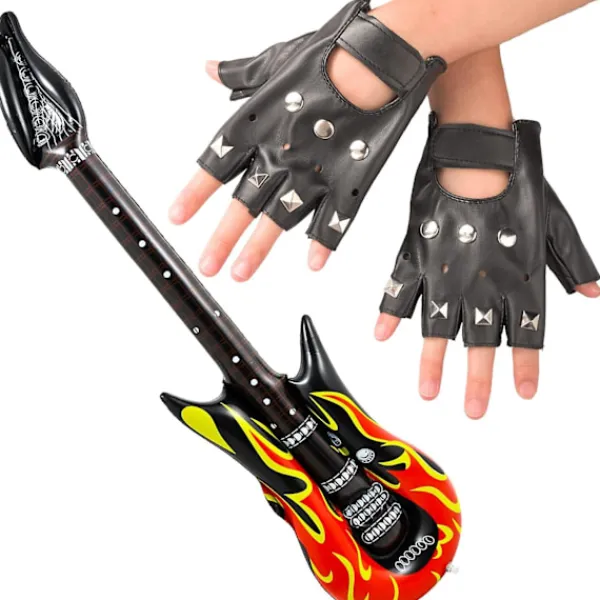 Funktion: gitarrens flammönsterdesign, som kan tända stämningen på festen du deltar i. Kombinationen av gitarr och handskar är en klassisk accessoar, detta set skulle vara det perfekta tillskottet till din punkfest.