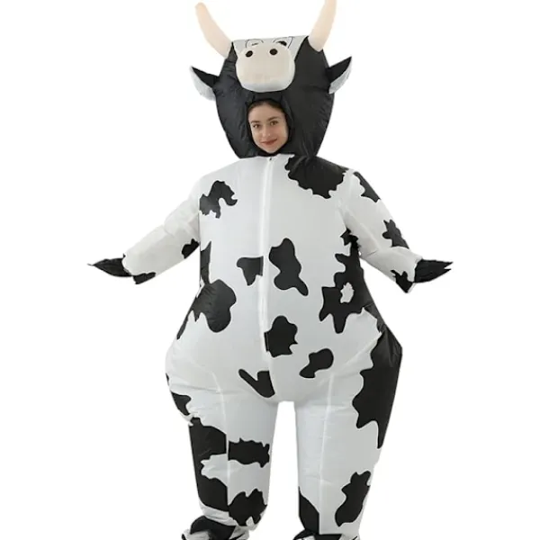 Material: Ko Uppblåsbar Kostym tillverkad av polyester. Storlek: En storlek för personer från 160 cm till 190 cm. Användning: Lämplig för utomhusbruk, årlig fest, klubb, TV-SHOW, karneval, invigningsceremoni, bröllop, Halloween, jul, festivaler, födelsedagsfest, svensexa, cosplayfest, etc. Paketinnehåll: paketet innehåller 1 x Uppblåsbar Ride-on Tupp Kostym, 1 x Luftfylld Fläkt, den luftfyllda fläkten kräver 4 AA-batterier (batteri ingår ej). Obs: Den uppblåsbara kostymen är lätt att blåsa upp och installera. Dra åt den yttre ringen. En fläkt kan blåsa upp plagget på 1-2 minuter.