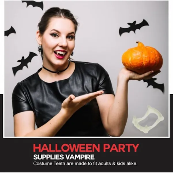 Hög kvalitet: Vampyrtänder är gjorda av högkvalitativa material som är säkra och hållbara. Falska vampyrtänder är smaklösa, luktfria, giftfria, säkra för hälsan och inte lätta att deformera. Halloween-tänder är mycket realistiska som riktiga vampyrtänder. Halloween-tänder med slät yta är lätta, bekväma att bära utan obehagliga känslor och skrapning av munnen. Mångsidig användning: Vampyrtänder är perfekta för Halloween, cosplay, kostymfester eller temaevenemang. Vampyrtänder som lyser i mörkret kan också användas för olika tillfällen som aprilskämt, spökhus, scenframträdanden och nattklubbar. Oavsett om du klär ut dig som en klassisk vampyr, en läskig ghoul eller en mystisk nattvarelse, lägger dessa falska vampyrtänder till ett extra lager av skräck till din kostym. Läskig glöd: På en mörk natt är vampyrtänder som bärs på munnen ganska spännande. Halloween-vampyrtänder lyser i mörkret, lysande tänder för att skapa en kylande effekt som förbättrar din kostyms äkthet. Vampyrtänder för att lägga till en skräckfestatmosfär. Klä upp tänderna kan också hjälpa dig att sticka ut från mängden och få bästa Halloween-klädda pris. Lätt att använda: Gör Halloween eller kostymfesten oförglömlig med läskiga vampyrtänder som lyser i mörkret. Falska vampyrtänder är lätta att använda, bara glida över dina egna tänder för en omedelbar förvandling till en blodtörstig eller krypande nattvarelse. Förvandla dig till en nattvarelse och skicka rysningar nerför ryggen på alla med läskiga och roliga tillbehör. Lysande tänder tillfredsställer dina cosplay-festbehov. Paketet innehåller: Lysande klara vampyrtänder är mycket praktiska och bekväma att använda. Detta paket ger dig ett paket med 1 st vampyrtänder som lyser i mörkret som du har gott om att dela med vänner eller använda för flera tillfällen. Dina Halloween-vampyrtänder som lyser i mörkret lägger till en extra läskig touch till vilken outfit som helst. Vampyr-tandställningen som lyser i mörkret är av utmärkt kvalitet och ett bra värde för pengarna.