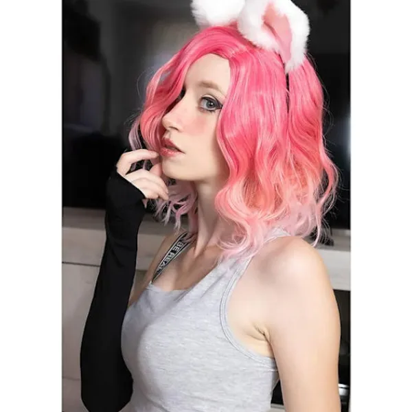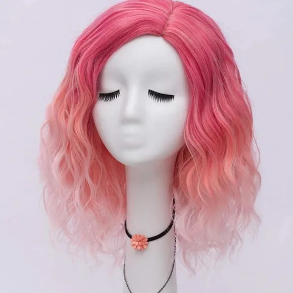 Värmebeständig vattenvågsperuk för tjejer dagligen (rosa gradient)