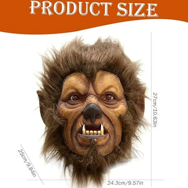 Material: Tillverkad av latexmaterial, denna varulvsmask säkerställer hållbarhet och säkerhet. Det högkvalitativa materialet ger ett realistiskt utseende samtidigt som det är skonsamt mot huden.Perfekt för alla tillfällen: Oavsett om du deltar på en Halloweenfest, en karneval eller bara vill skoja med vänner, är denna mångsidiga varulvsmask säker på att dra blickar och framkalla glädjeskrik! Det är det ultimata tillbehöret för alla kreativa kostymer.Fantastisk present: Letar du efter den perfekta presenten till skräckfans eller kostymälskare? Denna helhuvud päls varulvsmask är ett utmärkt val för födelsedagar, Halloween eller andra speciella tillfällen. Överraska dina nära och kära med detta oförglömliga tillbehör som de kommer att vilja använda år efter år!Idealisk för cosplay: Förvandla dina favoritskräckkaraktärer till liv med denna slående varulvsmask. Den är perfekt för cosplay-evenemang, rollspel och teaterföreställningar, vilket gör att du kan förkroppsliga anden av en majestätisk varulv med lätthet.Skräckinjagande varulvsmask: Denna skrämmande varulvsmask, med realistiska huggtänder och detaljerade hår, är perfekt för att skapa en skrämmande kostym. De verklighetstrogna funktionerna gör den till ett utmärkt val för skräckentusiaster.