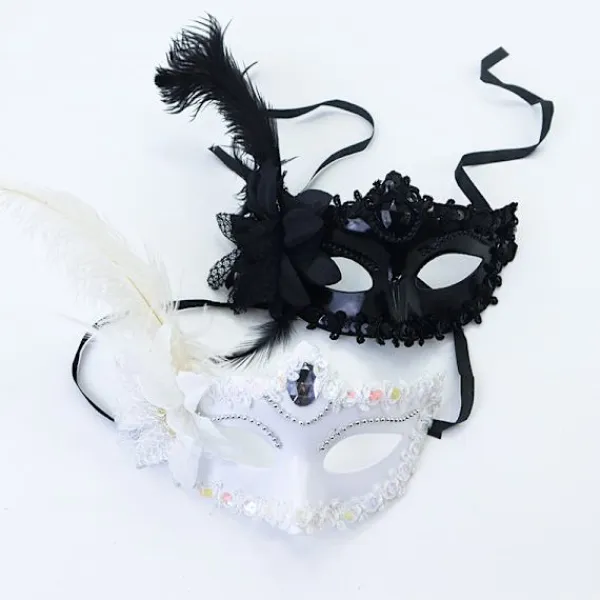 Venedig Vuxen Maskerad Prinsessa Mask Kvinnlig Halv Ansikte, Party Sexig Sida Blomma Strutsfjäder MaskAntal: 2Färg: Svart/VitProduktstorlek: 24*18cmPaketets innehåll: 1*Svart+1*VitObs: 1Vänligen tillåt vissa fel på grund av manuell mätning, det tillåtna mätfelet är +/- 1-3cm.2Färgerna kan variera beroende på olika bildskärmar, vänligen förstå