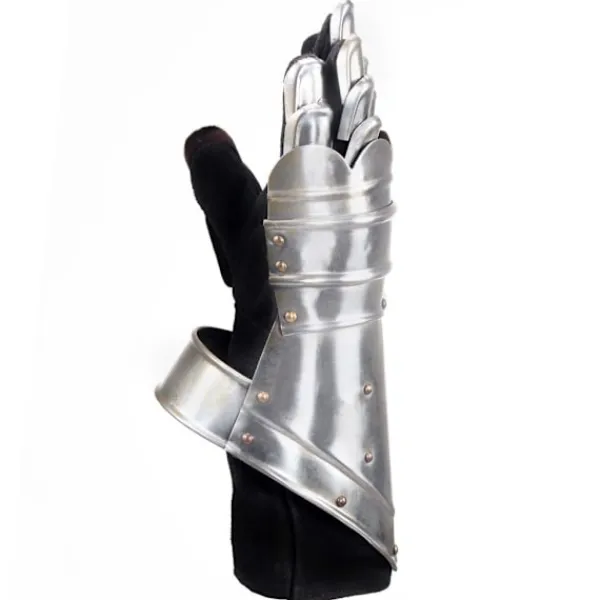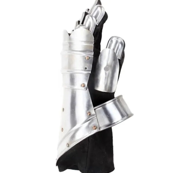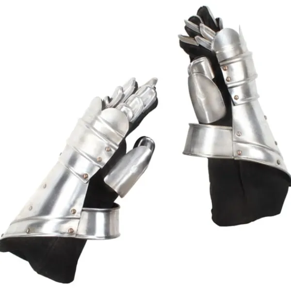 Harneskhandskarna är perfekta för att komplettera din riddarrustning. De erbjuder ett bra skydd och är perfekta för LARP (live action rollspel), cosplay, teater och historiska återberättelser. Harneskhandskarna är en kopia av medeltida harneskhandskar. De är lätta att bära och tillåter fullt rörelseomfång för dina händer, fingrar och handleder. Varje finger är täckt i stålfjäll för flexibilitet och rörlighet. Harneskhandskarna är tillverkade i 18-gradigt stål med ett behagligt sammetsfoder. De antika handskarna har utformats för att skydda händer, handleder och delar av armarna.