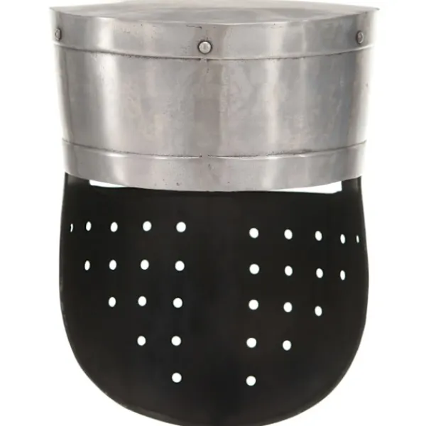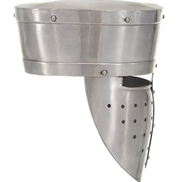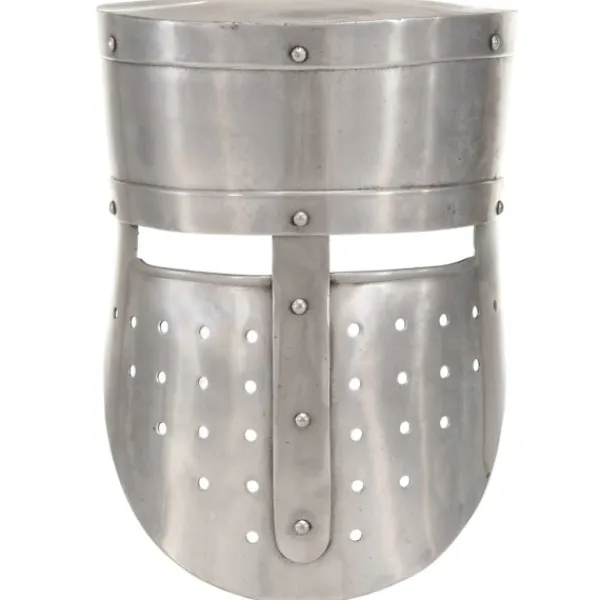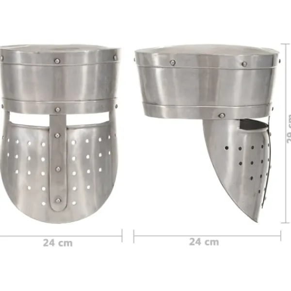 Denna riddarhjälm är bra för LARP (live action rollspel), cosplay, halloweenfester, teatraliska rekvisita och historiska pjäser. Riddarhjälmen är en exakt kopia av en original medeltida riddarhjälm. Den är tillverkad i 18-gradigt stål och kombinerar en antik stil och robust material till en iögonfallande hjälm som perfekt matchar din riddaroutfit. Denna helt bärbara riddarhjälm har små öppningar för ögonen och ventilation samt erbjuder ett utmärkt skydd. Dessutom kan det vara en fin dekoration i hemmet.