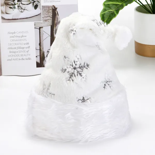🎅 Dubbelskiktsfoder: Tomtehattar är dekorerade med snöflingor, paljetter reflekterar ljuset från jullampor, ljusa och bländande, berikar julstämningen väl.