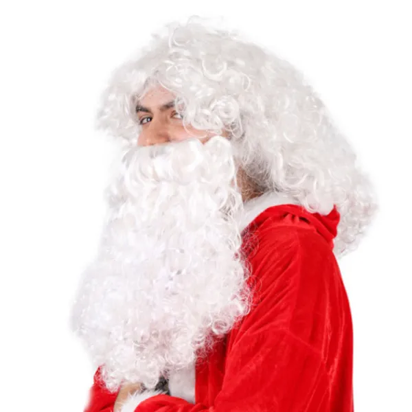 Lämplig publik: Denna mjuka och giftfria vita skäggdräkt är lämplig för tonåringar och vuxna, det justerbara elastiska repet gör att den passar olika huvudstorlekar, du kan bära den vita skäggdräkten med din familj eller vänner, ni kan alla vara ”tomten”