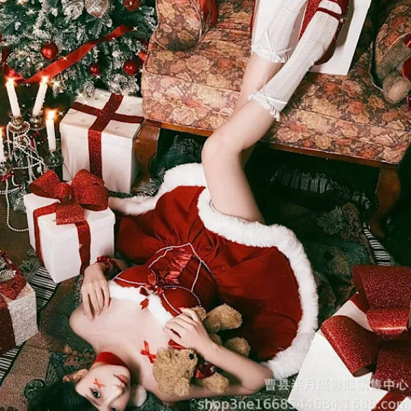 Elegant & Festlig Stil: Prinsessiluett prydd med klassiska julmotiv, som kombinerar elegans med festlig charm.