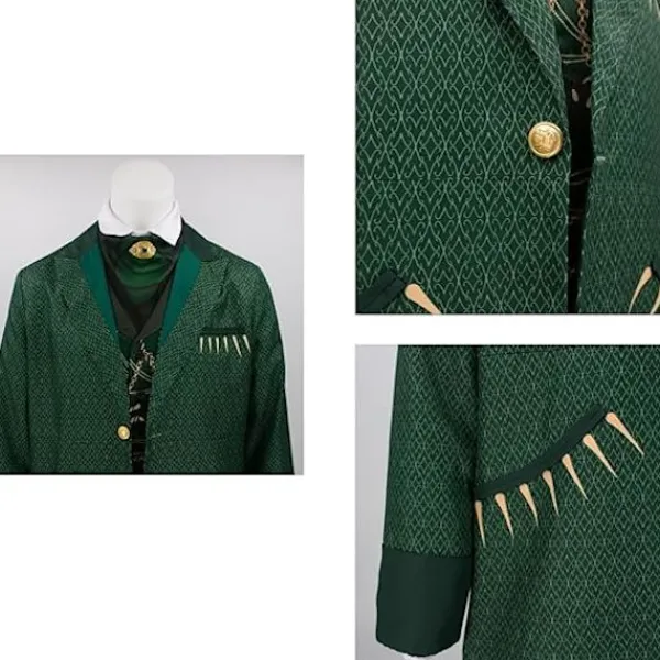 Detta OZ Magician Warlock-set inkluderar en högkvalitativ jacka i bomull och polyester, T-shirt, byxor, väst och halsduk, perfekt för Halloween-kostymer och cosplay.