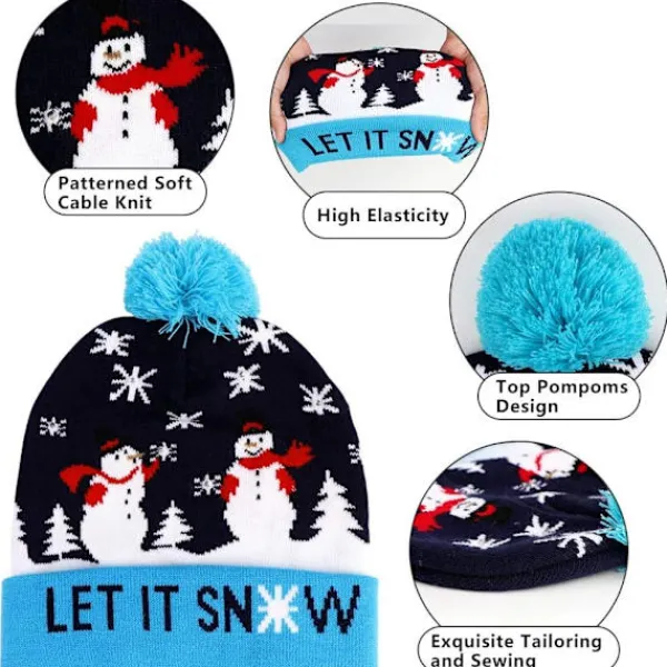 ❤ Universell Storlek: 30 x 21cm (12″ x 8″). Denna LED-tomteluva är perfekt för barn, män och kvinnor under denna högtidssäsong. Vacker och fashionabel, den kommer verkligen att bidra till din festivalstämning. ❤ Mjuk Stickning: Dubbla lager, kraftiga stickade material med hög elasticitet. Hudvänlig och mjuk, håller ditt huvud varmt med en söt stil, lämplig för inom- och utomhusbruk. ❤ Lätt att Använda: Färgglada blinkande LED-lampor drivs av 2 knappbatterier (ingår). Vrid strömbrytaren till ”ON” läge för att aktivera lamporna. Byt enkelt ut batteriet när strömmen tar slut. ❤ Tillfälle: Denna blinkande LED-hatt med snögubbe-, snöflinge- och träd-mönster kommer att göra dig mer attraktiv oavsett om det är jul, klubb, dans, födelsedagsfest, baraktiviteter, nattcykling eller andra firanden. Det är också den bästa julklappen till dina vänner och familj.