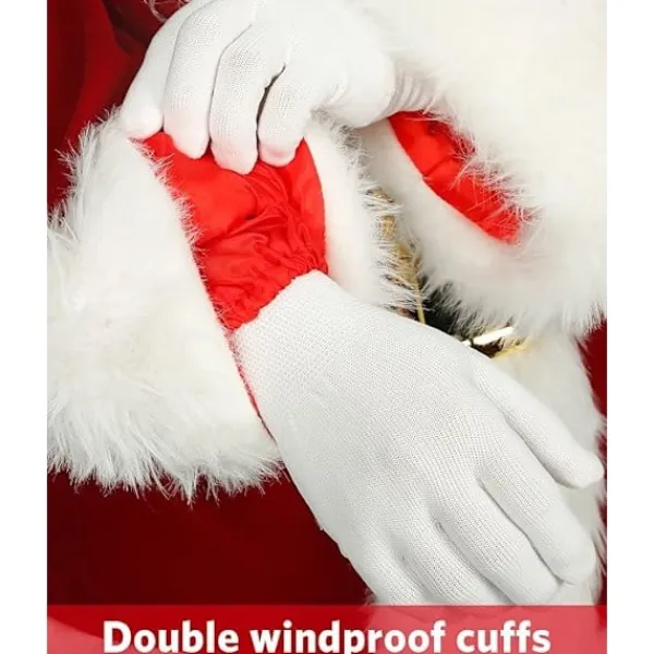 Vad du vill: Vuxen herr Jultomte, utsökt plysch, dekorerad med lyxig vit plysch, helt fodrad. Som en årlig tradition kan du lägga Jultomten i en återanvändbar förvaringsväska. En högkvalitativ sammetsjultomteset som du kommer att älska att bära i många år framöver. Detta kommer att vara ett intressant tillbehör som kommer att fånga allas uppmärksamhet!