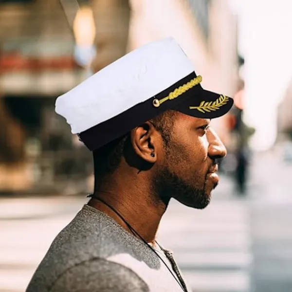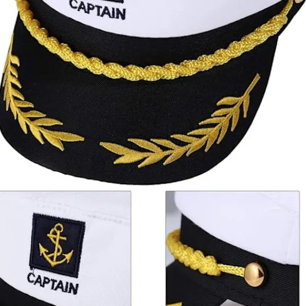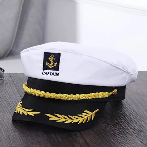 En sjökaptenhatt är ett oumbärligt dekorativt tillbehör för att klä upp sig som en sjöman, den speciella nautiska stilen är perfekt för att bära på sjöfartsdagar, mycket praktisk.
